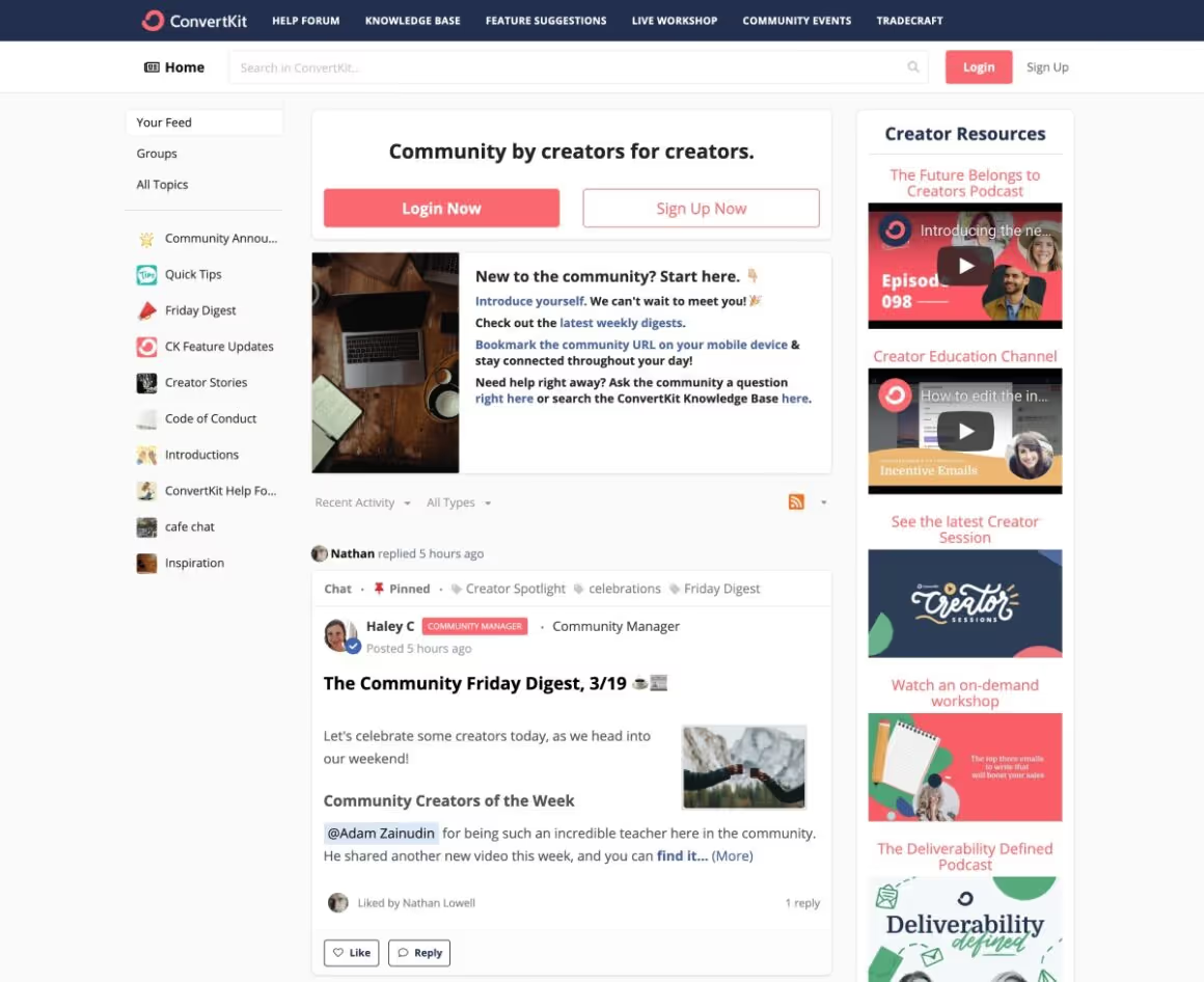 - ConvertKit created a branded online community where creators can exchange ideas, share successes, and seek guidance.